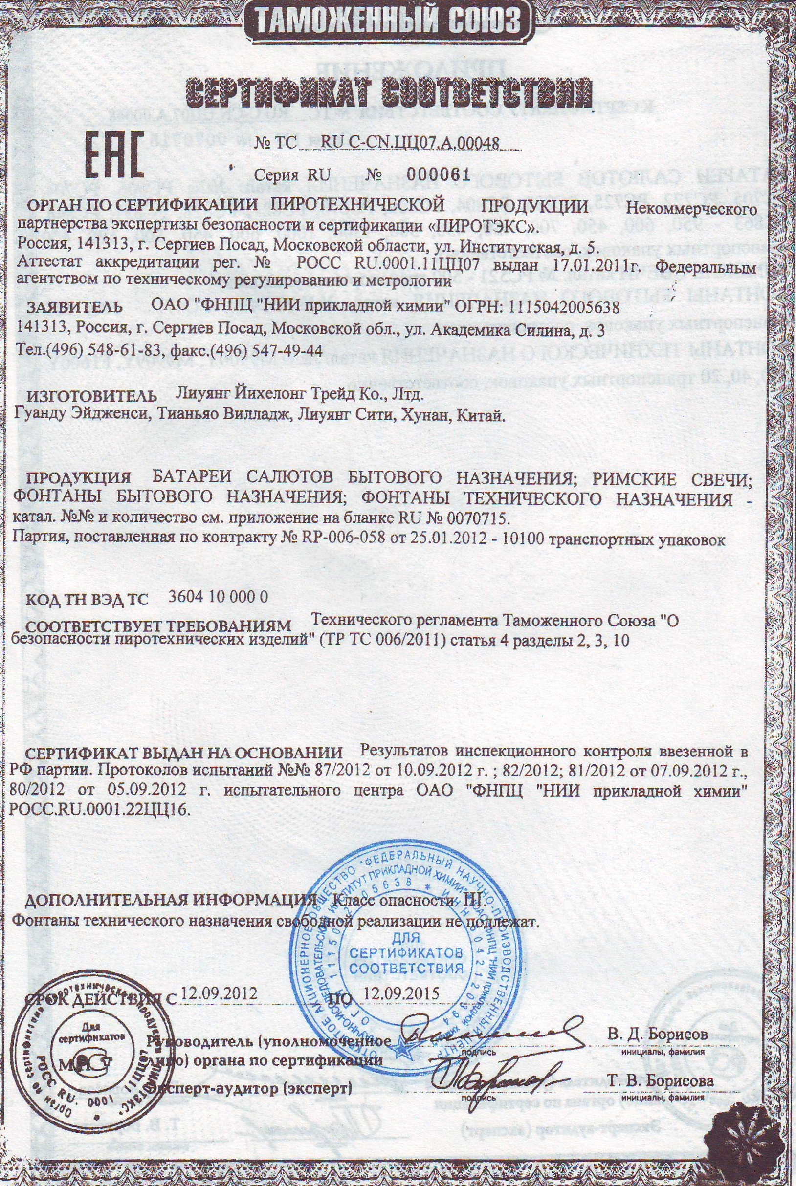 Фейерверки ТМ "Русская пиротехника"