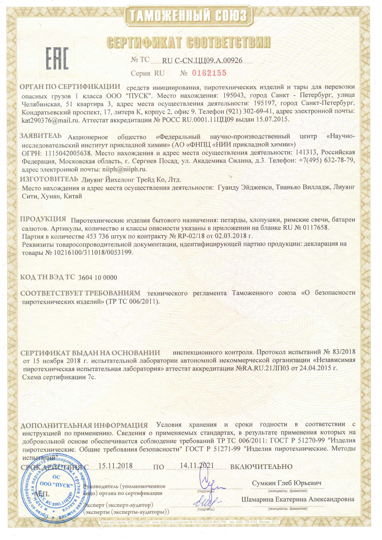 Данное несработавшее изделие следует замочить на двое суток в воде и утилизировать с бытовыми отходами.
